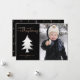 Den här helgdag i snyggt har ett Julgran med ett vitt marmorutseende och prickade dekorationer i ro guld. "God jul" är skrivet i enlighet med modern typografi, och det finns en plats att anpassa med namn och ett favoritfoto, allt på en modern svart bakgrund. Kortets baksida har en svart marmor och faux ro guld polka dots.