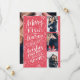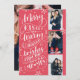 Denna moderna och chic helgdag-fotokortets dubblor sparar datumkortet för det nyanställda paret. Framsidan innehåller 3 av dina foton som accentueras av hand plockade snöflingor och handskriven typografi som säger "Merry Kisses and Warm Helgdag from the Soon to BE Mr and Mrs" på röd bakgrund. Baksidan innehåller ett foto där du kan spara datuminformationen.