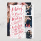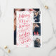 Denna moderna och chic helgdag-fotokortets dubblor sparar datumkortet för det nyanställda paret. Framsidan innehåller 3 av dina foton som accentueras av hand plockade snöflingor och handskriven typografi som säger "Merry Kisses and Warm Helgdag from the Soon to BE Mr and Mrs" i rött på vit bakgrund. Baksidan innehåller ett foto där du kan spara datuminformationen.