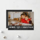 Merry Little jul Black Modern Script Photo Julkort