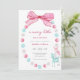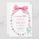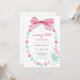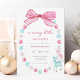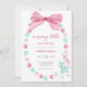 Den här "lilla julen"-duschinbjudan i flicka har en fin och känslig design med en pastellpalett med färg av pinkar, blåsor och vita. En vit vattenfärgsbuk i rosa överst och gräns i pastellbubblor som liknar julprydnader ram kortet. Två söta baby-hjortar lägger till en söt säsong-beröring i högernas hörn i grund. Utformningen kombinerar vackert jul med en mjuk, välkomnande vibe för en dusch i flicka.