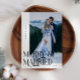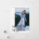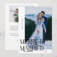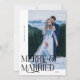 Minimal- och elegant-kort för nyfödda som firar sin första jul tillsammans som make och fru med en text som säger "Merry and Married" på foto med ett böjt hörn.