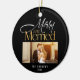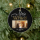 Fira din första jul som gift par med den här eleganten och den moderna julprydnaden. Med ord "Merry & Married" i ett skript i snyggt guld är detta prydnadsföremål perfekt för att dela din glädje med nära och kära. Anpassa den med två av dina favoritfoton.
