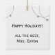 Tre Erlenmeyerkolvar med olika färgader gör att detta helgdag passar för en kemist. Det finns tre matchande bubblor på baksidan. Texten på framsidan lyder "Följ mig i Merry Measure" - den redigerbara texten på baksidan lyder "Glad helg!" med utrymme så att du kan anpassa presenten med ett namn. Lärare och vetenskapsmän kommer att uppskatta denna känsla när de höjer sitt glasprogram för julsäsongen.