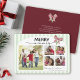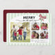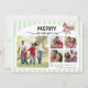 Det här vågrät med julkort har en glatt och beundransvärd samling familjefotografier som är inramade i ett mjukt, ljust grönt, strippat gräns. Överst visas frasen "MERRY-minnen" på en framträdande plats, där ett fet, festivt teckensnitt blandas med ett skript för elegant. Ett band för rosa och grönt ger en munter helgdag i det övre hörnet av högerna. Kortet ger plats för fem familjefotografier, ett större och fyra mindre fyrkantiga foton och anpassningsbar på baksidan för ett personligt meddelande. Den här designen förmedlar vackert värme, anslutning och firande, skapar den en underbar Julhälsningar.