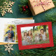 Elegant enkel minimal röd och vit 4-anpassningsbars familjefotografi "Merry and Bright Tillsammans"-skriptmall (överlägg textmall) för helgdag. +++++++++++++++++++++++ Enkel att anpassa med bilder, text, familj namn och önskemål på båda sidor!