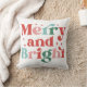 Texten från Retro stil lyder Merry och Bright på denna färgstarka jul dekorativ kudde.