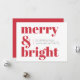 Ett modernt platta Julhälsningar kort i snyggt med ett fet återtypografiskt citat "merry & bright" i ljust rött på vit bakgrund med ett kompletterande kännetecken färg på motsatt sida. Hälsning, budskap och namn kan enkelt anpassas till kostym som du behöver. En roligt för trendiget som utmärker den här julhelgen!