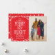 "God & Bright" julfotokortet har ett foto från porträtt, röd bakgrund färg (som kan anpassas för att matcha ditt foto), ram av vita stjärnor och snöflingor och vintern snö mönster på kortets baksida.