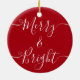 Merry och Bright | Modern Typografi Röd jul Julgransprydnad Keramik