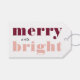 Märkrn för julklapp har vin röd och ro guld/ rosa med typografin "Merry and Bright" i fet stil. Anpassa med en anpassningsbar hälsning och din familj namn på baksidan. Perfekt för helgdag!