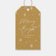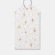 Elegant och moderna helgdag med märkre med "Merry and Bright" som visas i ett vitt, handskrivet skript som är framskrivet av en gräns av vita stjärnor med guld-bakgrund. Anpassa märkrna för merry och smart presenter genom att lägga till ditt namn.