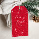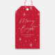 Elegant och moderna helgdag med märkre med "Merry and Bright" som visas i ett vitt, handskript som ramas av en gräns av vita stjärnor med röd bakgrund. Anpassa märkrna för merry och smart presenter genom att lägga till ditt namn.