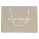 En modern helgdag-presentväska i snyggt är en fet återtypografi som citerar "merry & bright" i vitt på ett naturfenat stensbeige i neutralt färg. Hälsning och namn kan lätt anpassas för personligt bruk. Ett trendig, minimalistiskt och contemporary för att visa ut den här julhelgen!