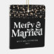 Julens bröllop-annonstecken tänder modern typografi Merry och den gifta prydnaden helgdag bröllop. Fullt utfallsfoto.