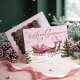 Fira årstidens magi med vår rosa jultomte vid jul i norra polen, helgdag julkort. Det här magiska kortet visar vår vackert utarbetade vattenfärgsscen med en Jultomten i rosa i stil i sitt rosa sleigh, som på ett skickligt sätt skjuter över en charmig by i Nordpolen. Den vintage-inspirerade "God jul" hälsning tillför en liten nostalgisk elegans. På baksidan vågigt du fotot ram för att visning fotot i familjen. Perfekt för att skicka varmt önskemål och festlig glädje fångar kortet den viskfulla andan av en rosa-temad jul. Handdragen med kärlek och utformat av Moodthology Papery.