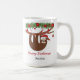 Cute Sloth på gren som dekorerades i jul stil. Anpassa namn och hälsning. Sloths, hälsning och namn ligger på båda sidor om mugg.