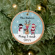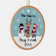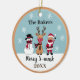 Den här roliga och söta julprydnaden har snögubbe, renar och Jultomten på masker. Det finns vackert rött, vitt, svart och brunt färg. Baksidan har en söt än färg med snöflingor. Du kan anpassa det här med namn och år.