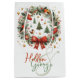 Ett vackert detaljerat exempel på utandning av helgdag som består av olika grönt löv och grenar, försedd med ljusröda bär. Utandningsegenskaperna mistletoe, holly och evergreen foliage med subtila ljusaccenter, ge det en festlig känsla och elegant känsla. Utformningen är delikat men levande, perfekt för jultemade dekorationer eller säsong-grafik. Byt foto och namn till ditt älskade baby och ha en festlig träd-prydnadsgåva!
