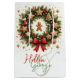 Ett vackert detaljerat exempel på utandning av helgdag som består av olika grönt löv och grenar, försedd med ljusröda bär. Utandningsegenskaperna mistletoe, holly och evergreen foliage med subtila ljusaccenter, ge det en festlig känsla och elegant känsla. Utformningen är delikat men levande, perfekt för jultemade dekorationer eller säsong-grafik. Byt foto och namn till ditt älskade baby och ha en festlig träd-prydnadsgåva!