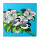 Svartkronad mes och blomkonst av dogwood med svart kontur på ljus klarblå bakgrund