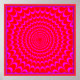 Optisk Illusion: I den här bilden skapar vågarna av koncentriska spikröda cirklar och rosa hur man uppfattar pulserande rörelse och vibrationer.