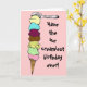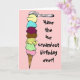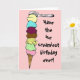 Glasskotte med olika anstrykningar för raddor. "Ha den mest krämiga födelsedagen för is någonsin",