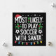Mest sannolikt att spela fotboll med tomte familj julkort