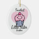 Vår MEST SWEETEST LITE SYSTER som designen är ett gulligt långt som firar systern, är lite i din familj. Presentera en söt le muffin med rosa glasyr på kaka och ett stort rött körsbär överst med en rosa hjärtabakgrund. Perfekt för en födelsedag eller din julgran. Anpassadetext. Också tillgängligt på T-tröja och gåvor. PinkInkArt original!
