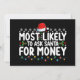 Mest troligt att du ber jultomten om pengar inbjudningar