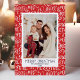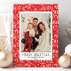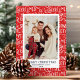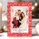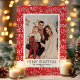 Minneshögtid för året med det här moderna familjefotokortet. Den livfulla röda bakgrunden har en snygg, handskriven design med frasen "Den vackraste julen" som omger ditt omhuldade familjefoto. Perfekt för att sprida glädje och kärlek i julhelgen med personlig.