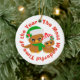 Denna söta julprydnad har en bild av en stor ögonad tecknad uggla med baby uggla. Det större uggla är klädt i en grönt hatt och scarf, och baby uggla bär en röd och vit stripe. Uggla bilder är inramat av cirkeltexten "Mest underbara årtalet" och placerat på vit bakgrund. Baksidan av prydnadsämnet har en annan söt bild av uggla som rör sig på ett candy cane, med hulliga sprickor och röda stjärnor spridda runt. Din anpassningsbar står i rött vid grund. Roligt för barn!