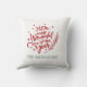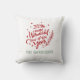 Säsongsdesign för kastkudde med modern röd text "Det är den mest underbara tiden på året" med grön anpassningsbar text som kan personifieras med efternamn. Grönt, snöflinga och stjärna accentuerar designen. Vit bakgrundsfärg.