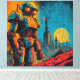 This vibrant digital art features a larger-than-life man-machine giant robot, exuding vivid colours and captivating design. The sci-fi theme is accentuated by the presence of iron robots, cyborgs, and humanoids, creating a visual feast for the eyes. The machine's intricate details come to life in a mesmerising display of futuristic art, evoking a sense of wonder and awe.