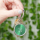 Metall monogram grönt blankt rund silverfärgad nyckelring