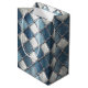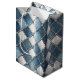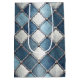 This seamless geometric pattern gift bag features a striking arrangement of metallic blue and silver diamond tiles connected with circular rivet details. The design showcases a modern industrial aesthetic with a luxurious metallic sheen and gradient texture, blending shades of cobalt, steel blue, and chrome silver. This pattern exudes strength, sophistication, and modern artistry. Ideal for geometric design lovers and those who appreciate metallic elegance and structured precision.