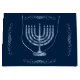 Här har vi en underbar presentväska som har en metallisk filigree-menorah på en mörk blått bakgrund. Den här väskan är en matchning mot andra presentpåsar, som slår pappra, vävnadspapper och ett hälsningskort! Det kommer att göra en perfekt till din gåva till dina vänner och din familj den här julhelgen.