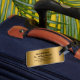 Elevate your travel with our luggage tag design featuring a simple gold background with customizable black typography.