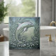 Dive into dramatic elegance with this unique relief-style dolphin tile. Designed to mimic chiseled, embossed metal, the detailed dolphin is set amidst swirling kelp and bubbles. The finish features a luxurious, shifting iridescent sheen—like mother-of-pearl or oil-slick chrome—that catches the light in shades of silvery aqua and pale violet. Perfect for adding a sophisticated, modern, and high-impact nautical touch to any upscale interior space. Search ID1223 to see other marine elements in this dramatic metallic series. Note: design may contain generative content.