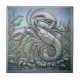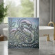Dive into dramatic elegance with this unique relief-style lobster tile. Designed to mimic chiseled, embossed metal, the detailed crustacean is set amidst swirling kelp and waves. The finish features a luxurious, shifting iridescent sheen—like mother-of-pearl or oil-slick chrome—that catches the light in shades of silvery aqua and pale violet. Perfect for adding a sophisticated, modern, and high-impact nautical touch to any upscale interior space. Search ID1223 to see other marine elements in this dramatic metallic series. Note: design may contain generative content.