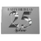 Lycklig 25-årsdagen. 25 år. Metalletikett för silver.