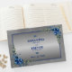 Metallic Silver, drömmar om Blue Guest Bok Den här gästande bok är ett mästerverk i design, med sina metalliska silver-förskönningar och slående blåa blommigtar, skapar det som en omhuldad keepy för kom i åratal.