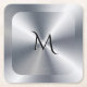 Revamp your drinking accessories with our stunning coaster design, featuring a shiny metallic silver, stainless steel look with a customizable monogram.