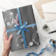 Ett festivt mönster av stora vita snurrar, snöflingor och stjärnor som är spridda över en metallisk grått-bakgrund, för att lägga till en elegant vid julklappen som täcker dessa helgdagar.