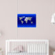 Stiliserad global jord karta i Metall från borstat metall och djup blå havsbakgrund.