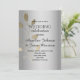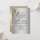 Enkel, modern, elegant, metallisk silvergrå och guld bröllopsinbjudan med chic virvel av blommor.
