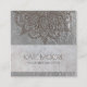 Mandala med metallisk silverbakgrundsyoga eller den holistic yrkevisitkorten. En subtil neutralt texturerade grått med striations av grått, metalliska grått och en älskvärd modern Sans Serif stilsort. Detta kort inspirerades av indiska Sarityger, men realiserade som en neutral palett ganska än en djärv palett. Sublety med en metallisk väderkorn. Ideal för en yogainstruktör, massageterapeuten, brunnsort servar och mer. En unik lownyckelblandning av neutralt och starkt grånar. Denna design är bäst som ställas ut på ett glansigt kortlagrar.