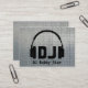 En mall för businesscard för tecknad för cooladj-logotyp. En bedöva design med dj-headphonetecknaden och texten dj på en metallisk bakgrund kombinerade med logotypen av en abstrakt headphone. en bradj-buisnescard.