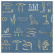 Den här djärva designen har metalliska guld-egyptiskt inspirerade hieroglyfer på blå bakgrund.