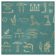 Den här fetstilta designen har metalliska guld-egyptiska hieroglyfer på gröntens bakgrund.